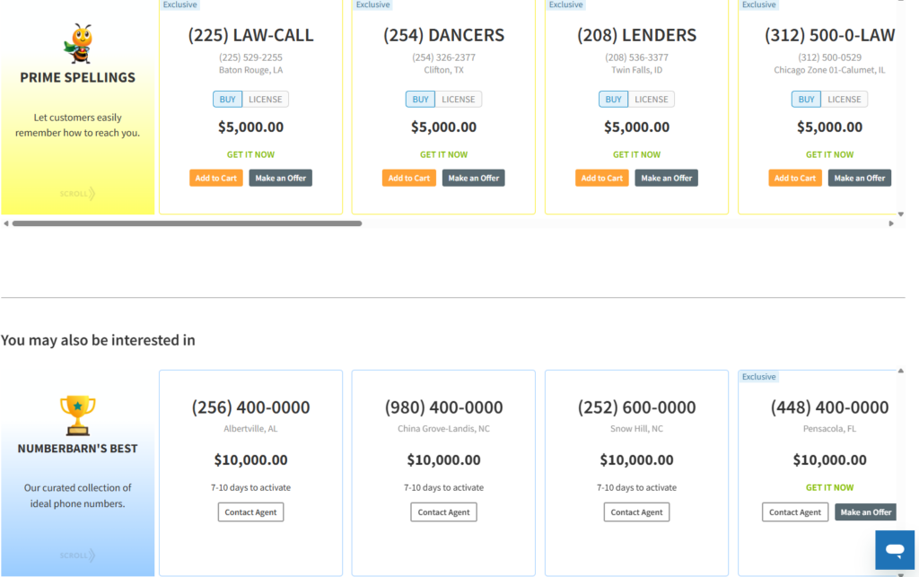 You can search by both numbers or letters, if you want a number that spells something fun or memorable. Costs start as low as $5, ranging up into the thousands or even tens of thousands for particularly valuable numbers. Very easy to remember repeating sequences cost more than $10,000, while terms from particular industries like legal or financial services might cost $5,000, or more. Some numbers are also open to negotiation, so maybe you’ll get lucky with a lower offer.