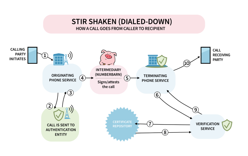 For example, if you own the NumberBarn number 206-555-1234, our system signs outbound calls from that number with A-level attestation because we have provisioned that number to you, and maintain a direct business relationship with you as our customer. This signature travels with the call and can be verified by the receiving phone carrier, giving them confidence that the caller ID hasn’t been spoofed.