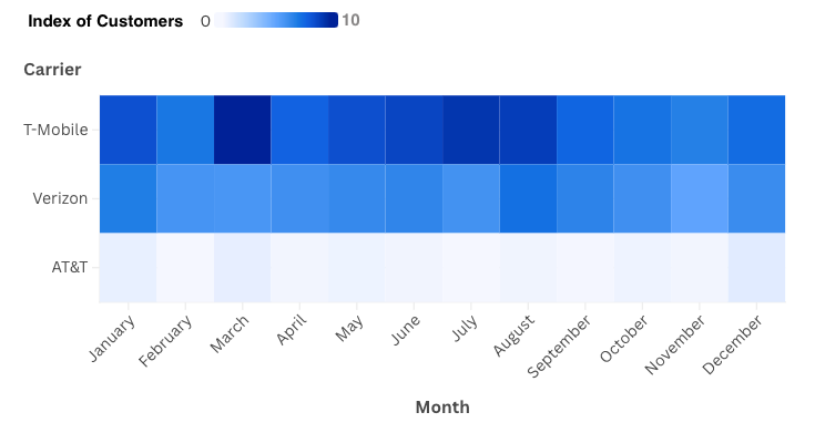 None of this tells us why someone switches but it does show that carrier changes follow predictable rhythms tied to promotions, device launches, and end-of-year mobile plan re-considerations..